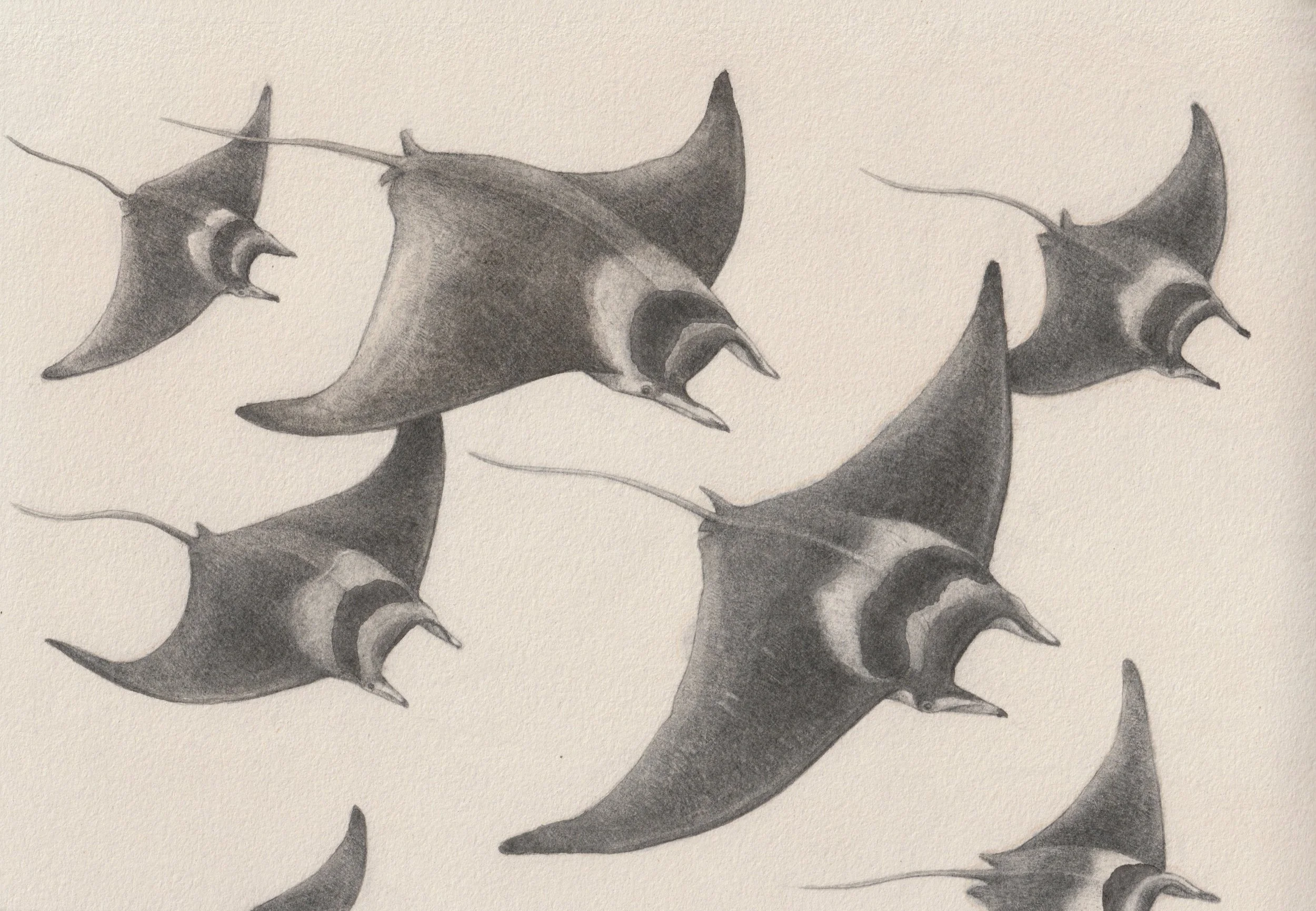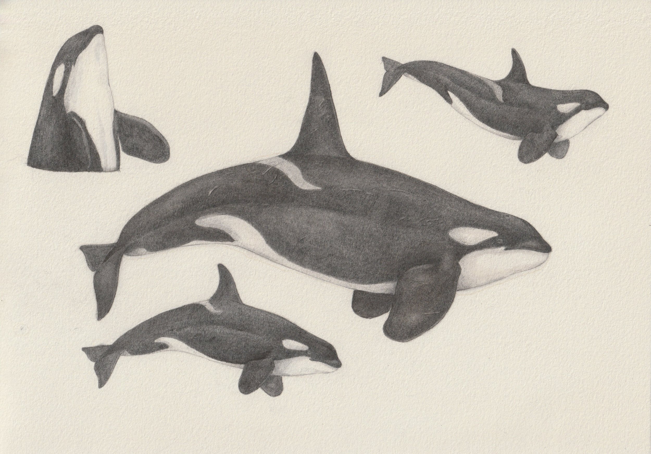 Since I became a whale watching guide, my fascination for marine life grew immensely. Studying these species learned me a lot about our oceans, ecosystems, key species,.. . I liked the idea of honoring some of them with a personalized drawing. The majority of these animals are cetaceans that inhabit the Mediterranean Sea. All af these drawings are created with graphite pencil. Listed from left to right, and then downward: Killer whales, devil rays, sperm whales, long-finned pilot whales, humpback whales, Risso’s dolphins, common fin whales, common dolphins.